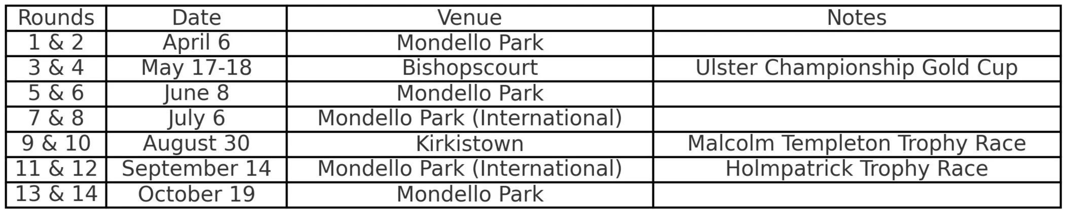 2025 Formula BOSS Ireland Championship Calendar